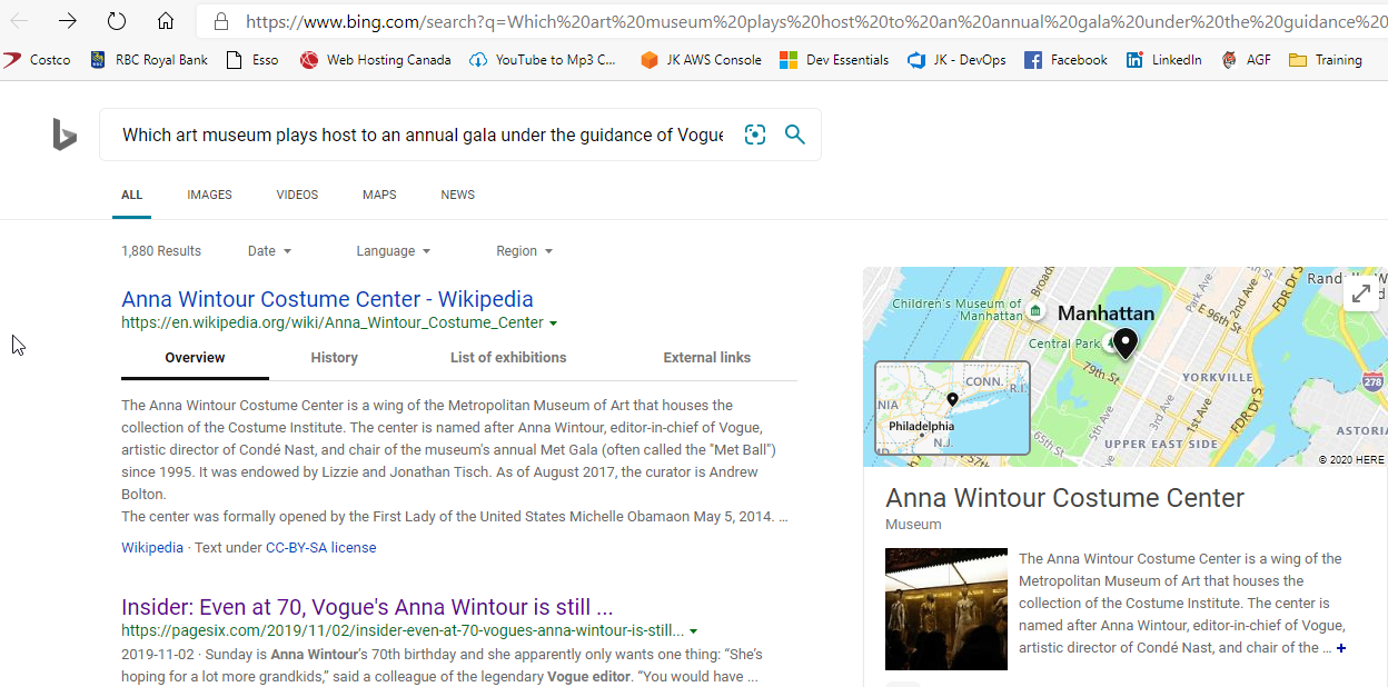 Which art museum plays host to an annual gala under the guidance of Vogue editor Anna Wintour?